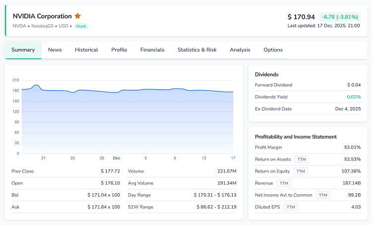 Explore global investment opportunities with real-time and historical data. Search, filter, and compare assets — then save your picks into watchlists and screeners for faster, smarter decisions